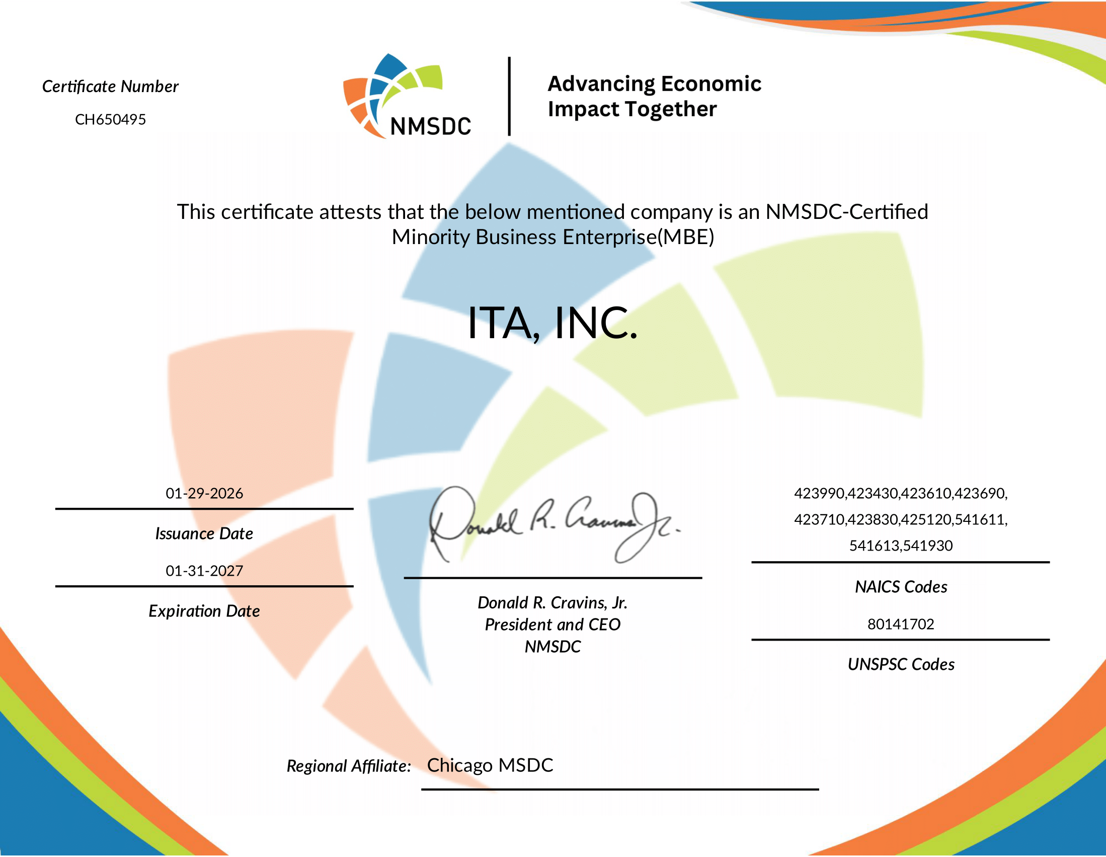 And, supporting companies' Supplier Diversity & Inclusion Programs.